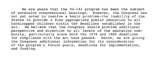 This 1981 report by the U.S. Comptroller indicated that in ten states, the number of students identified for special education was lower than the estimates at the time PL 94-142 was enacted, raising concerns about federal funding responsibility .